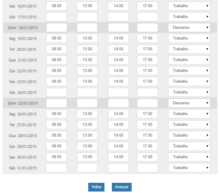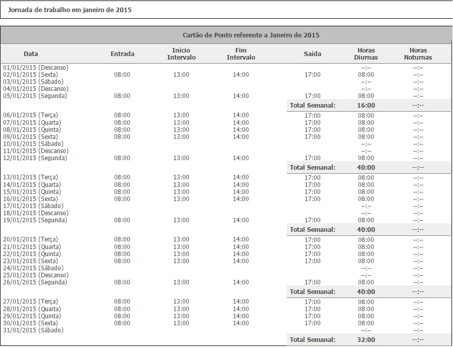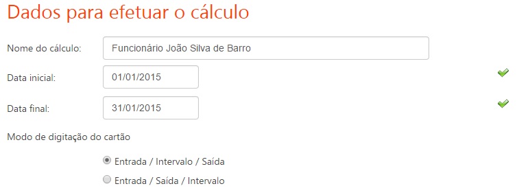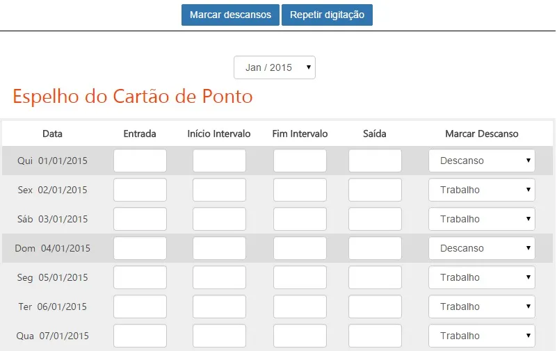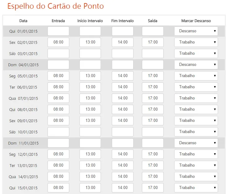 Após repetir a digitação, o espelho do cartão de ponto será autocompletado. Exemplo: